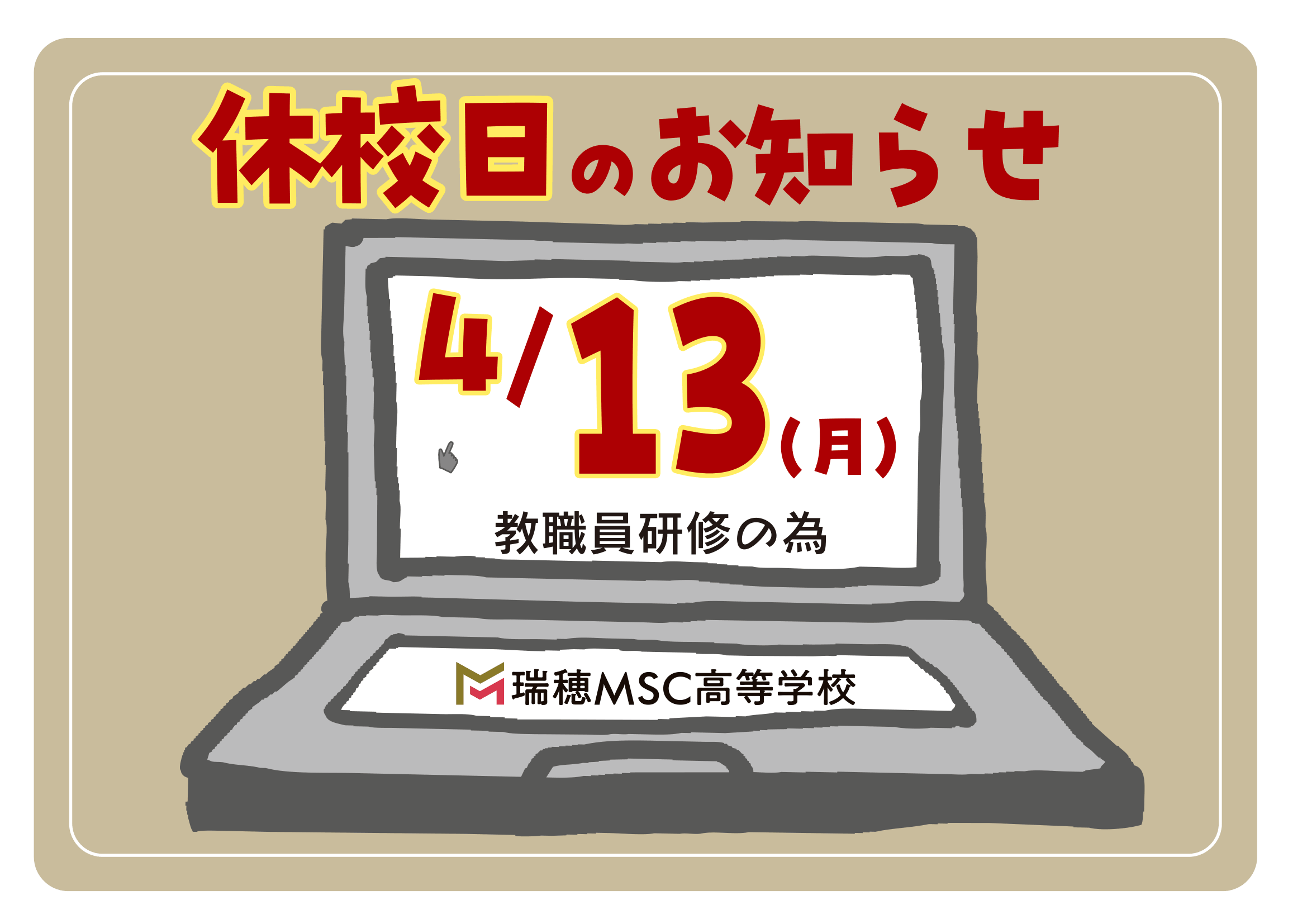 【校舎一斉休校のお知らせ 4/13(月)】